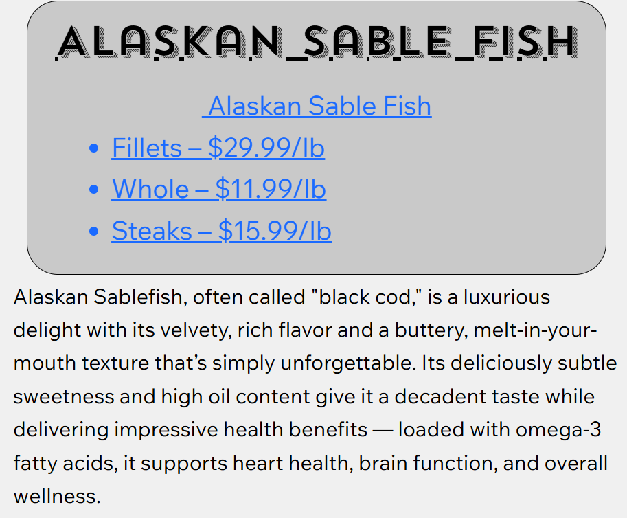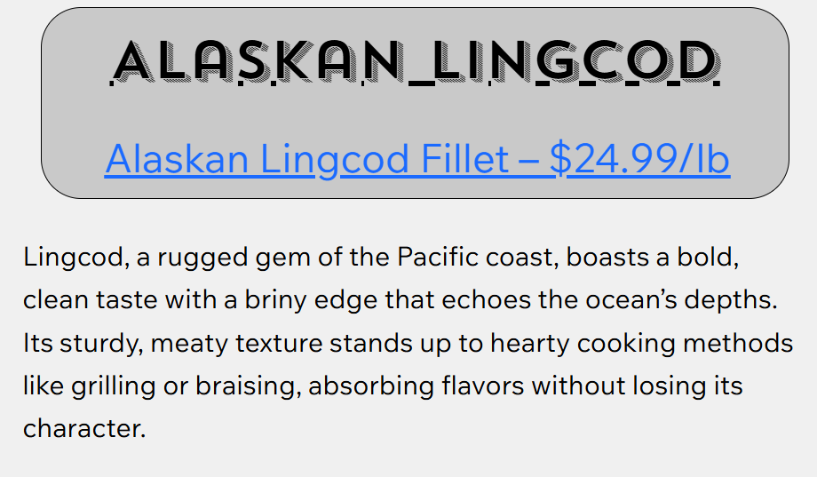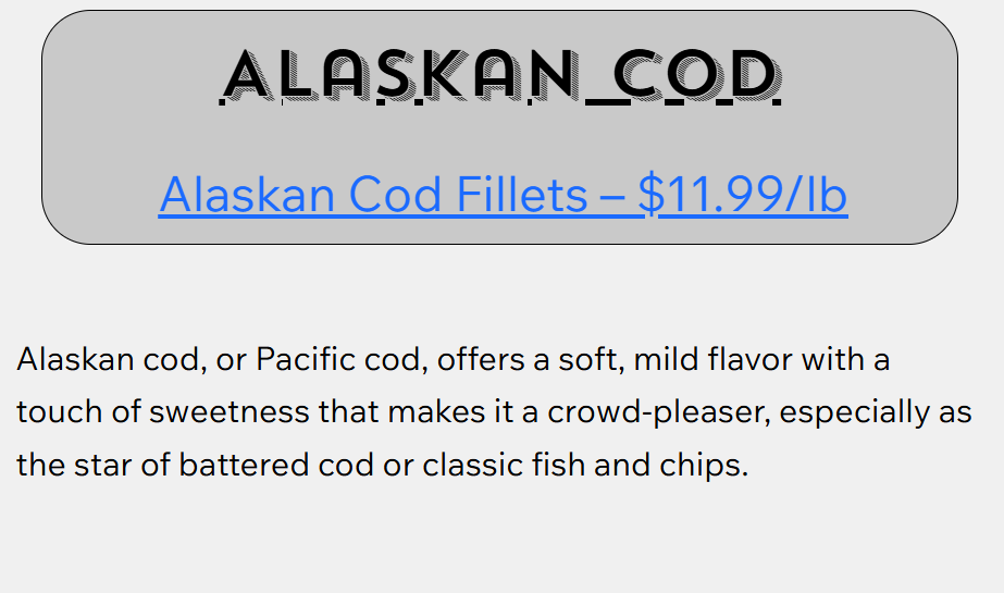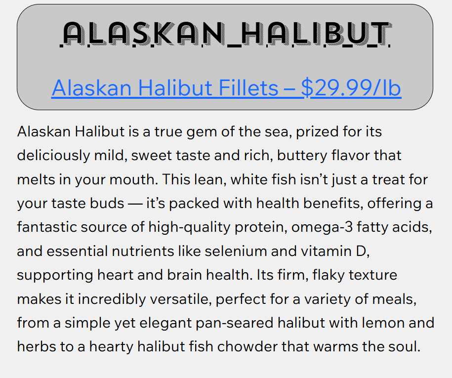 Welcome to Invisible Fresh Market Seafood, where the pristine waters of Alaska meet the expertise of a family of devoted fishermen. As dedicated local fishermen, we take pride our hands-on approach to catching, processing, and offering a diverse selection of premium seafood. From succulent Halibut and Sablefish to flavorful Pacific Cod, Rockfish, and delectable Crab, our commitment to quality and tradition shines through in every catch. Join us on a culinary journey that celebrates the rich bounty of Alaskan waters, bringing the freshest and finest seafood to your table, from our famiy to yours!